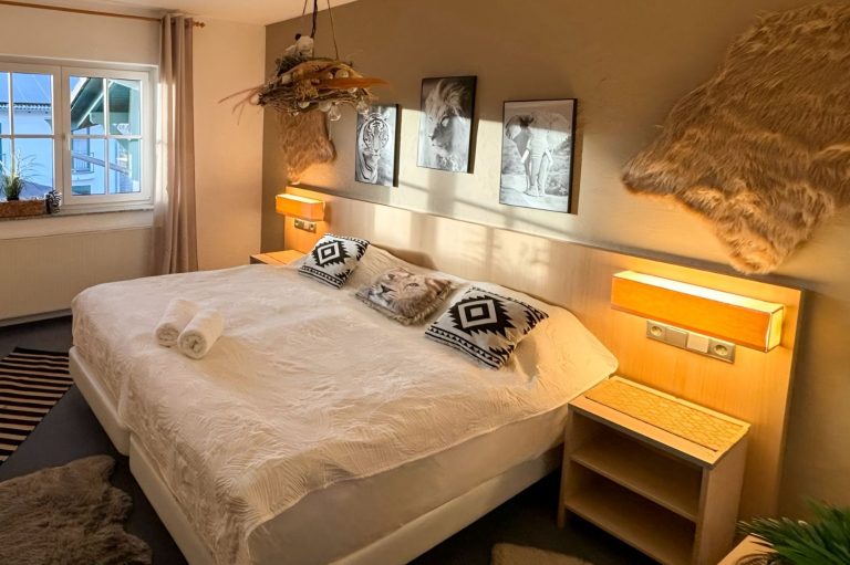 Unsere Doppelzimmer bietet den perfekten Rückzugsort. Diese Zimmer sind mit einem bequemen Doppelbett ausgestattet und bieten ausreichend Platz, um sich zu entspannen.